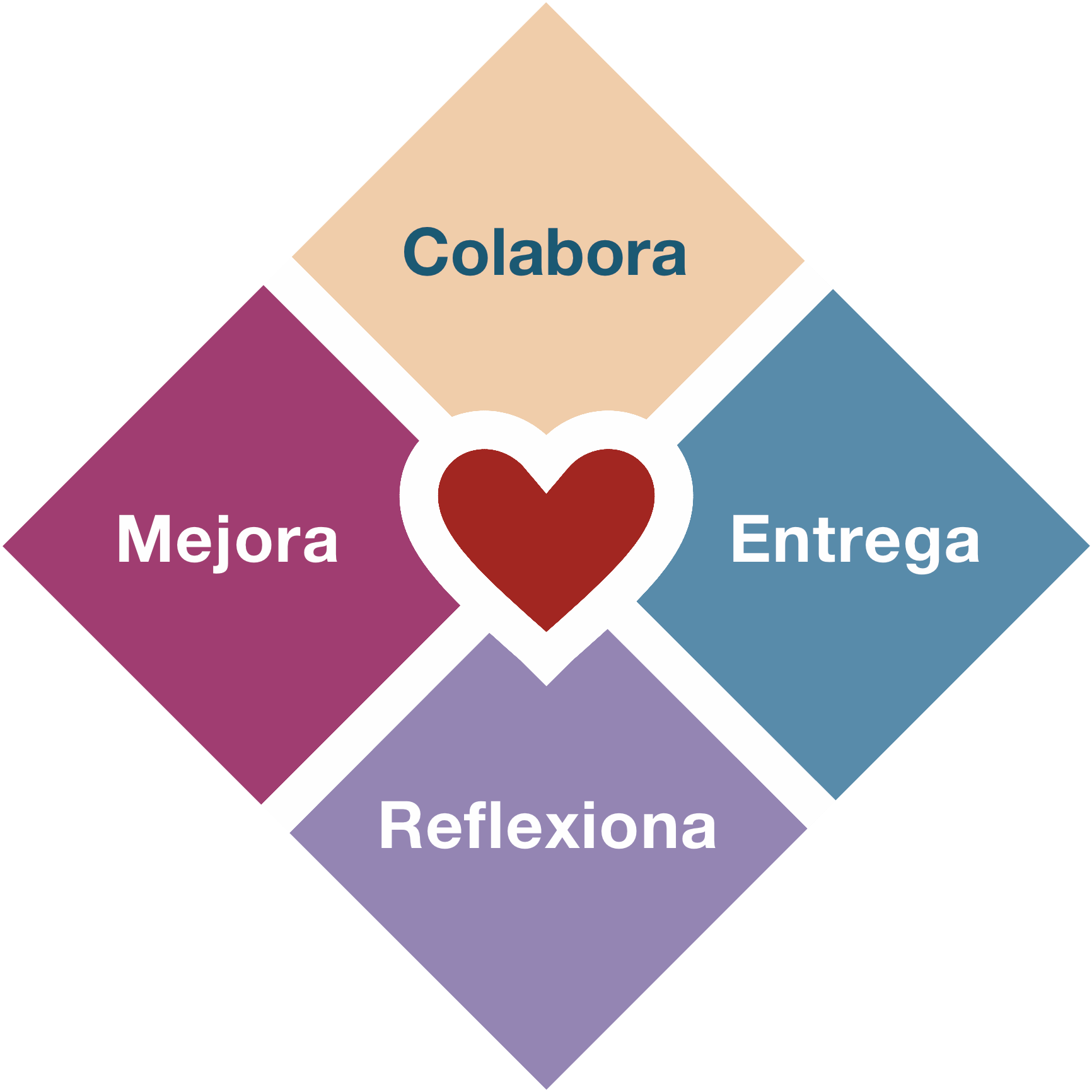 Alistair Cockburn con su Heart of Agile trata de volver a cuatro estadios que serían la esencia de la agilidad: Colaborar, Entregar, Reflexionar y Mejorar.
