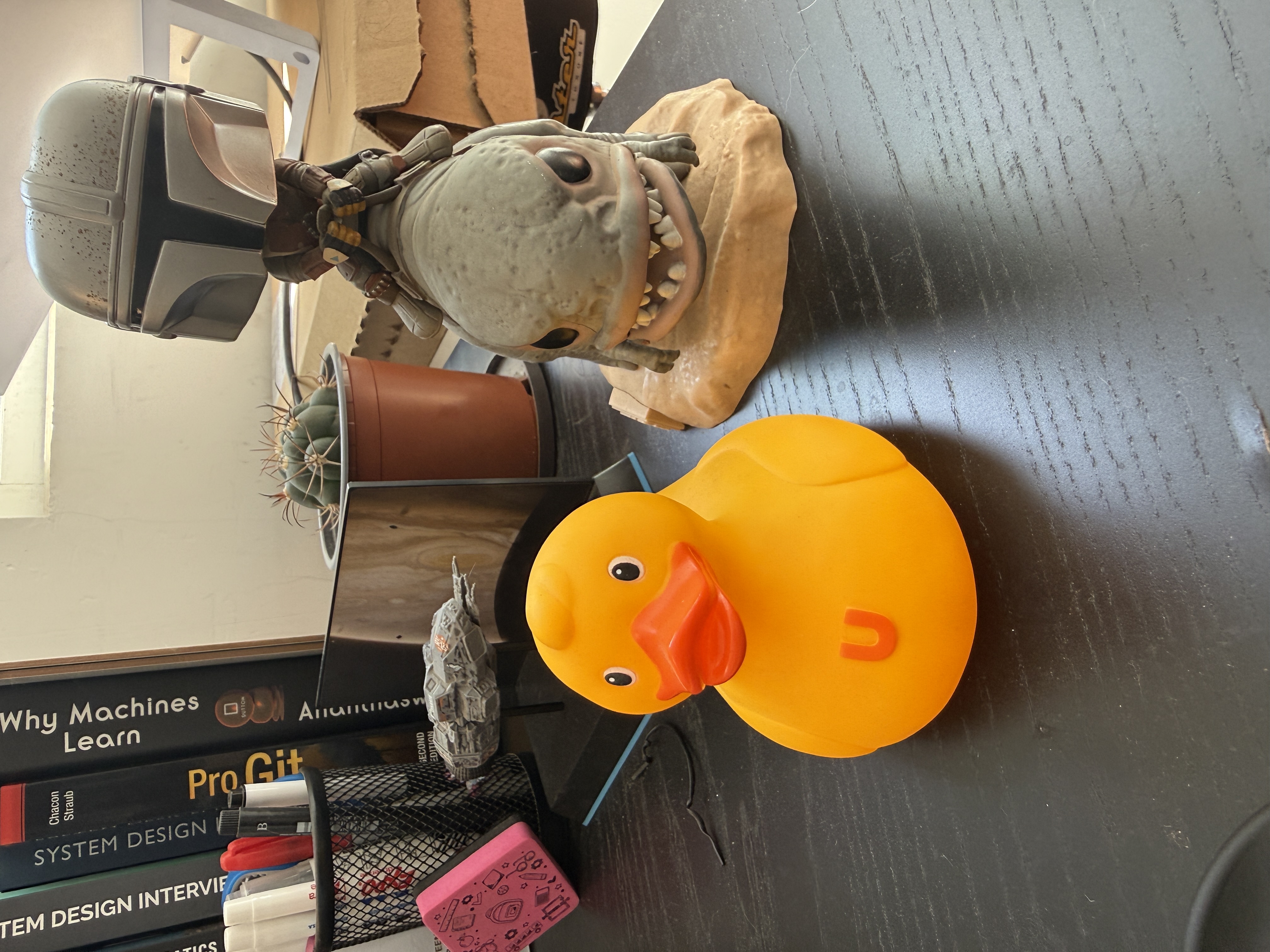 Este patito apareció luego que el mío desapareciera por unos días, como no lo encontrábamos mis hijos me compraron este, el problema es que parece que tiene asma :D (No se preocupen, mi super pato apareció días después que este amiguito llegó).